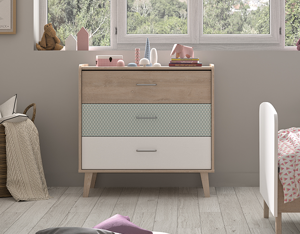 Lit bebe et tiroir commode plan a langer armoire matelas couffin berceau literie accessoires chambre ecoute bebe decoration secu domestique linge de lit tour de lit couvre lit. Livraison - Stock permanent. Commode 3 Tiroirs ZELIE Une impression numérique est réalisée sur le tiroir central.