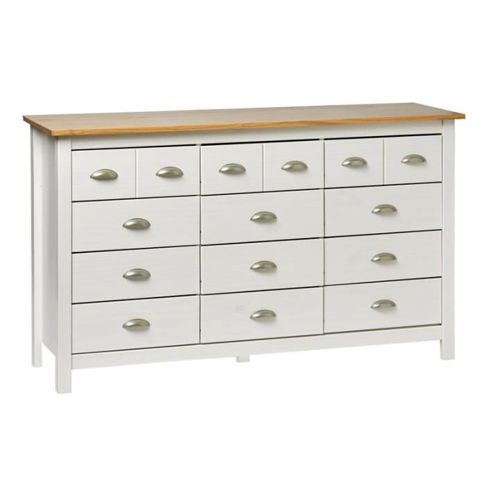 Commode 12 Tiroirs Blanc Et Bois Emie L 133 X L 39 X H 80 Cdiscount Maison