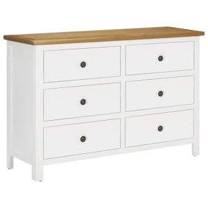 Commode Maya Blanche 6 Tiroirs 80x120x40cm. Entretien facile et durable encoches pratiques à lavant des tiroirs coulissants. Structure en panneaux de particules décor blanc.