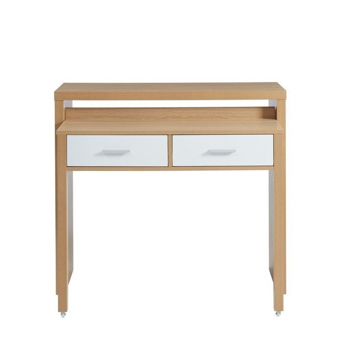 Console Nordik convertible en bureau de style nordique et fabriquée avec un plateau en mélamine combiné en 2 couleurs. Bureau extensible CLEA 2 tiroirs L99cm 24900 14900 ou en 4X dès 3725 par mois dont 200 déco participation. Aujourdhui jeudi 20 mai 2021 faites vous plaisir grâce à notre sélection Bureau extensible coloris blanc pas cher.