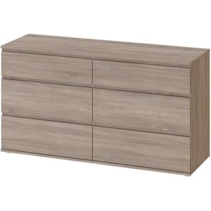 Pari est une gamme de meubles qui comprend différentes commodes. Produit fabriqué en Europe. Commode 6 tiroirs TEMPO 2 coloris chêne argile.