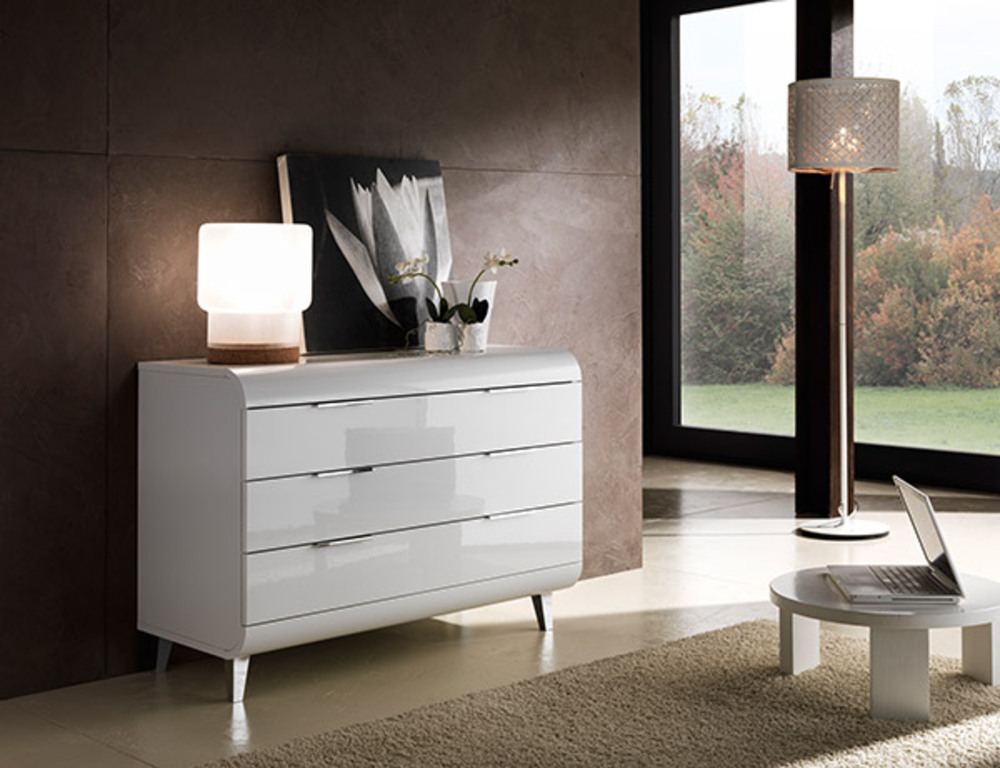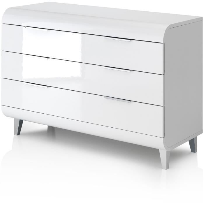 Faites vous plaisir grâce à notre sélection Commode de chambre blanc brillant pas cher. Commode 2 portes avec 2 tiroirs de la collection Futura en couleur blanc brillant et chêne riviera. Commode 3 tiroirs vinia blanche.