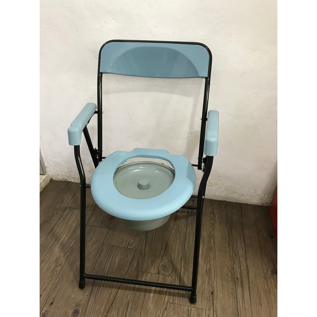 For Disabled Person Elderly Pregnant Women With Backrest And Armrests Black Bathroom Chair Portable Folding Toilet Chair Commode Pan And Lid Kitchen Bathroom Fixtures Bathroom Fixtures