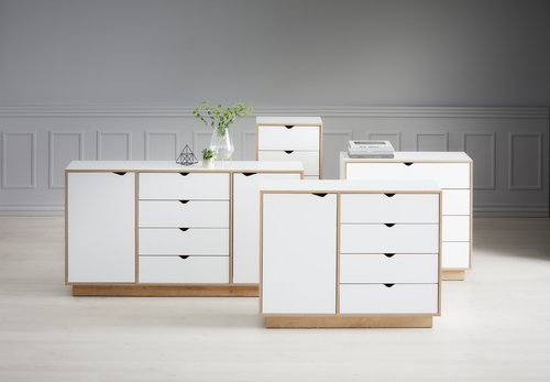 Fini blanc mat classique. Cette unité de tiroir sintègre parfaitement à tout style dintérieur et convient au salon à la cuisine à la chambre à coucher à la salle de bain etc. BASIC 80- pcs En savoir plus Commode 4 tiroirs MAMMEN blancchêne.
