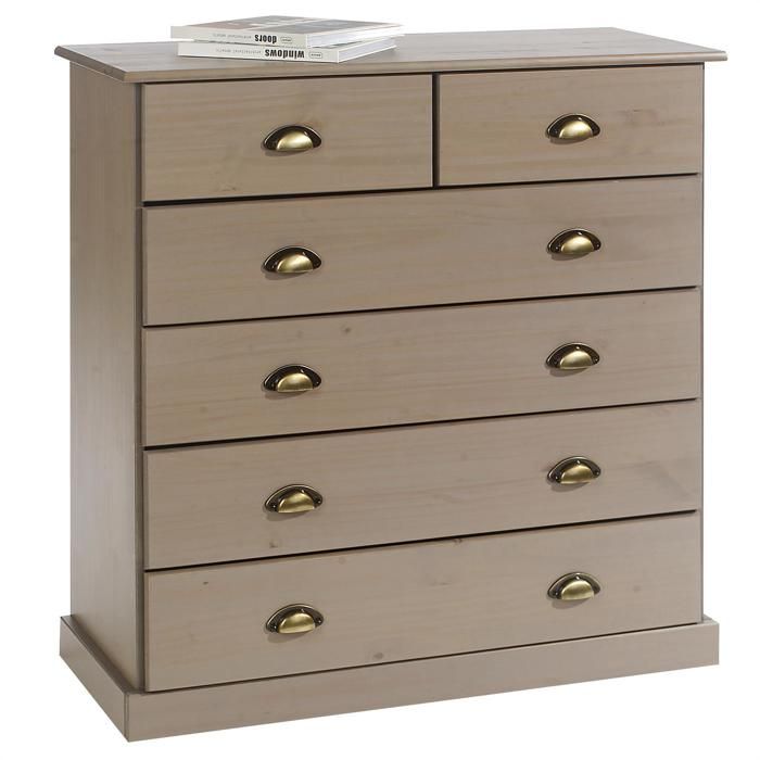 Commode De Chambre Paris Avec 6 Tiroirs En Pin Massif Lasure Taupe Cdiscount Maison