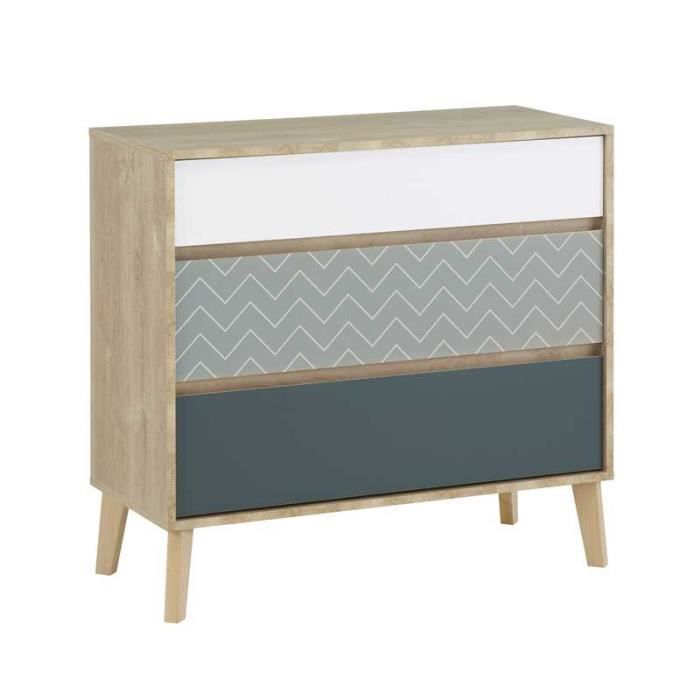 Commode 3 Tiroirs Chene Blond Bleu Blanc Esmey L 94 X L 40 X H 86 Cdiscount Maison