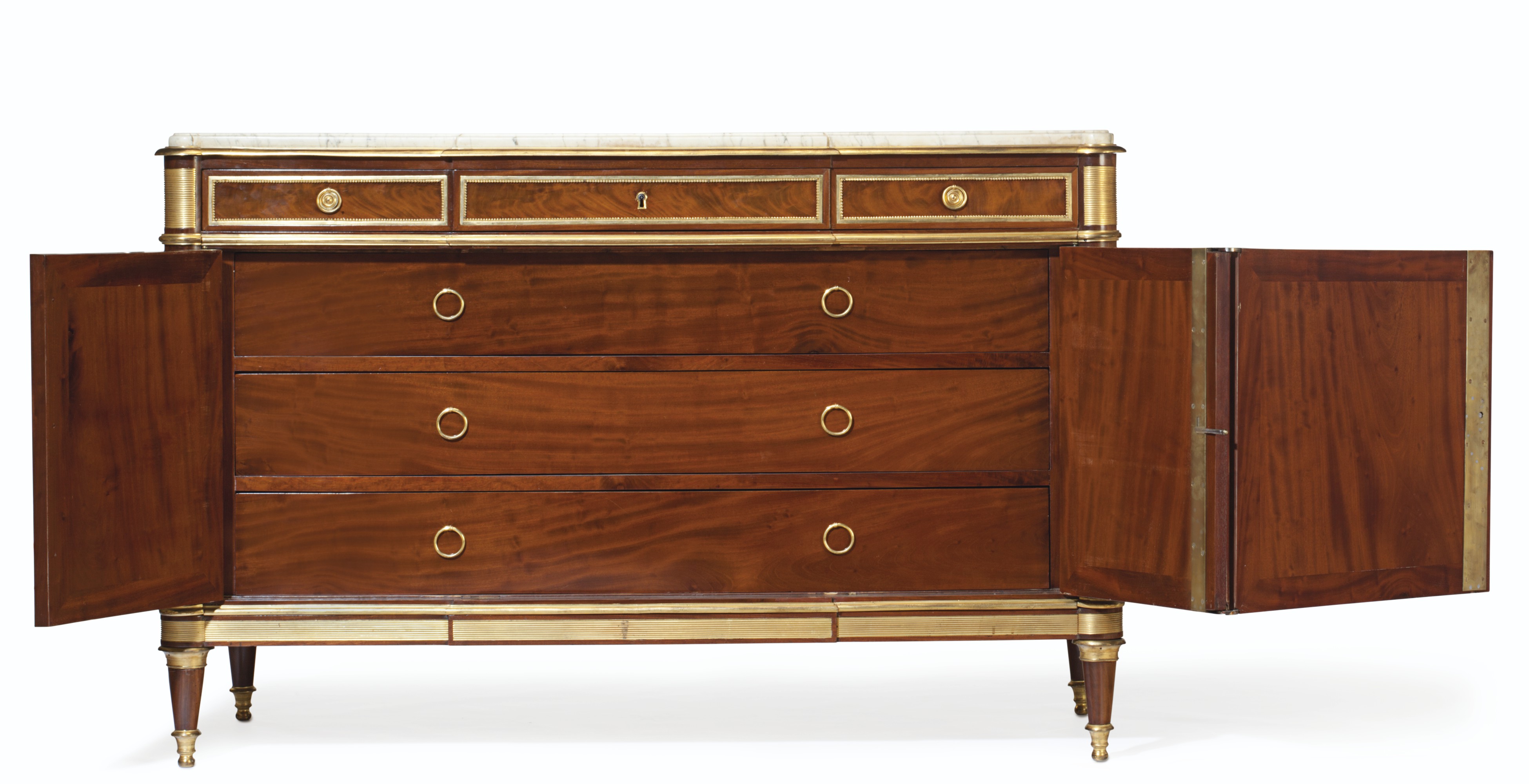 A Louis Xvi Ormolu Mounted Mahogany Commode