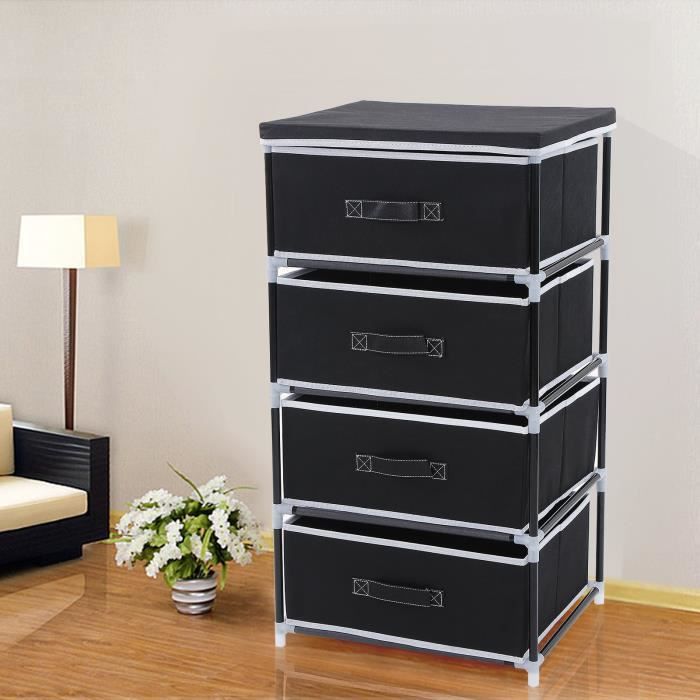 Commode 3 Niveaux Avec Tiroirs En Tissu Noir Achat Vente Commode Pas Cher Couleur Et Design Fr