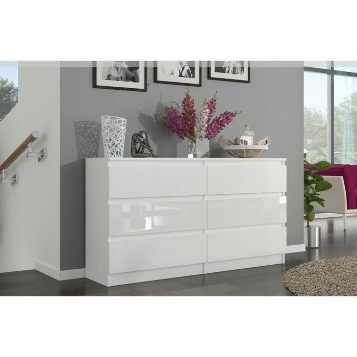 Commode 6 Tiroirs Blanc Brillant Cdiscount Maison