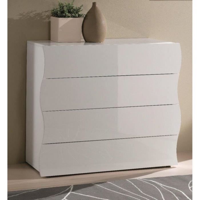 Commode Vague 4 Tiroirs Blanc Brillant Blanc Inside75 Cdiscount Maison