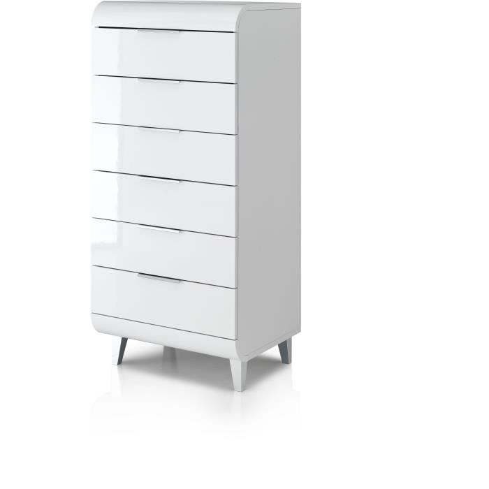 Vega Chifonnier 6 Tiroirs Style Contemporain Fabrication Italienne Blanc Laque L 50 X P 45 X H 120 Cm Cdiscount Maison