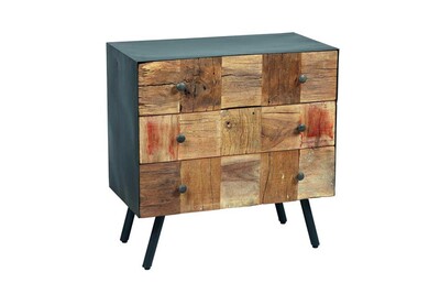 Commode Tousmesmeubles Commode 3 Tiroirs Acier Noir Bois Massif Chalerston L 75 X L 38 X H 75 Neuf Darty
