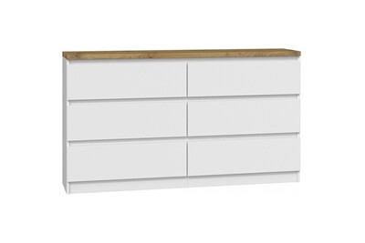 Commode Hucoco Jagge Commode De Chambre Plateau Epais 6 Tiroirs 138x78x40 Cm Style Scandinave Meuble De Rangement Double Finition Blanc Chene Darty