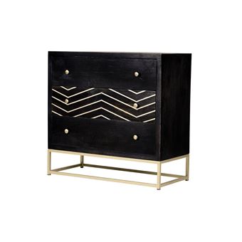 Commode Art Deco 3 Tiroirs Prismin Bois De Manguier Et Metal Noir Et Dore Achat Prix Fnac
