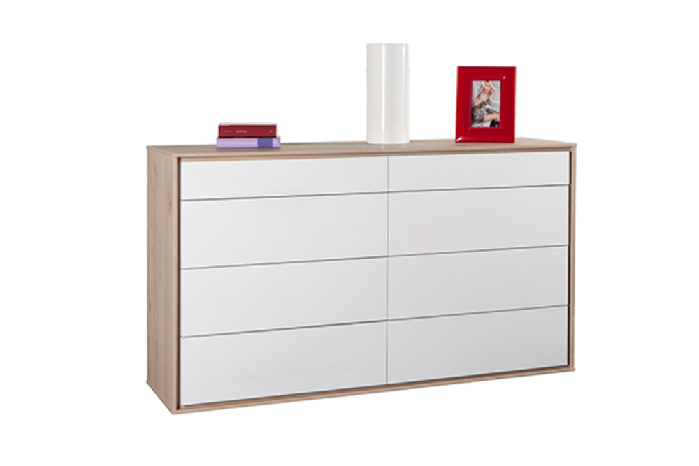 Commode 8 tiroirs - ELON. COMMODES COMMODE 8 TIROIRS. Structure et façades de tiroirs laquées blanc haute brillance vernis polyuréthane.