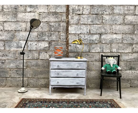 Commode En Bois Blanche Et Grise Patinee Vintage Annees 70 Selency
