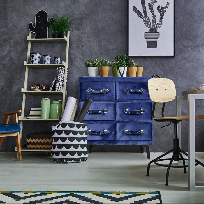 Commode 6 Tiroirs Bardo Velours Bleu Cdiscount Maison