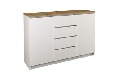 Buffet Bahut Hucoco Kara Buffet Commode Salon Sejour Chambre 120x98x40 Cm Plateau Epais 22mm 4 Tiroirs 2 Portes Meuble De Rangement Blanc Darty