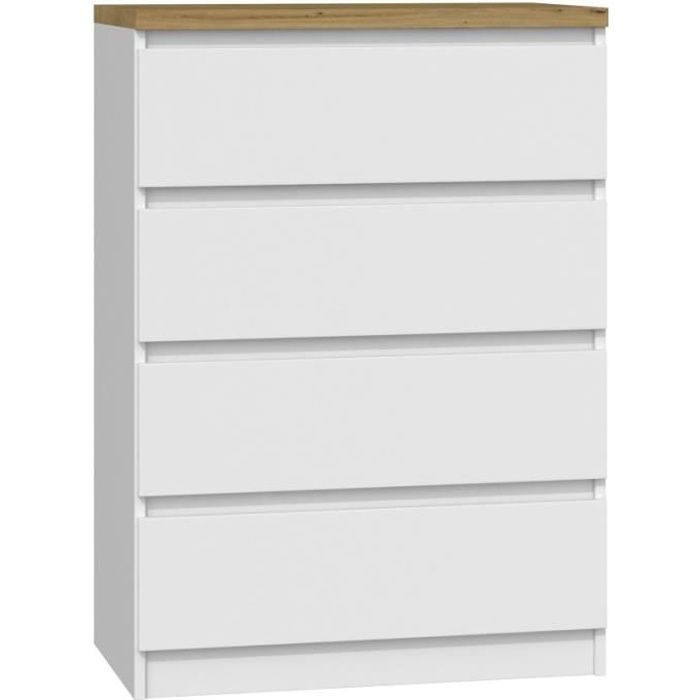 Mikkel Commode Chambre Bureau Salon Style Scandinave 98x70x40 Cm Plateau Epais 22mm 4 Tiroirs Meuble De Rangement Blanc Cdiscount Maison