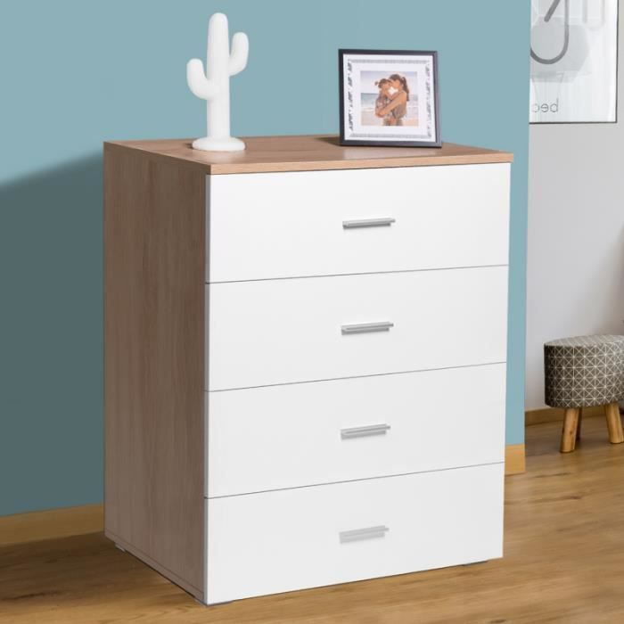 Commode 4 Tiroirs Bois Imitation Hetre Et Blanc Lola Cdiscount Maison